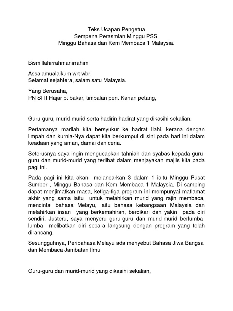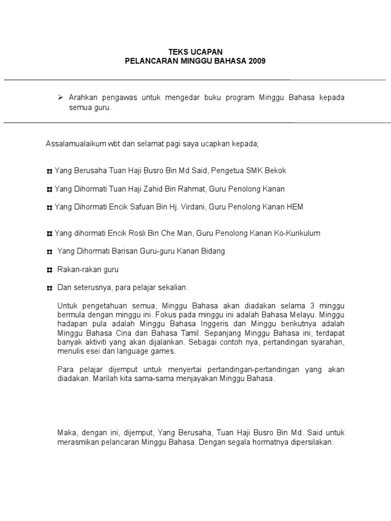 Teks Ucapan Perasmian Minggu Bahasa Pdf