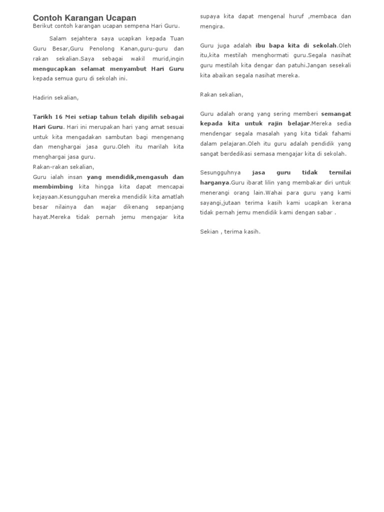 Contoh Karangan Ucapan Sempena Hari Guru Pdf